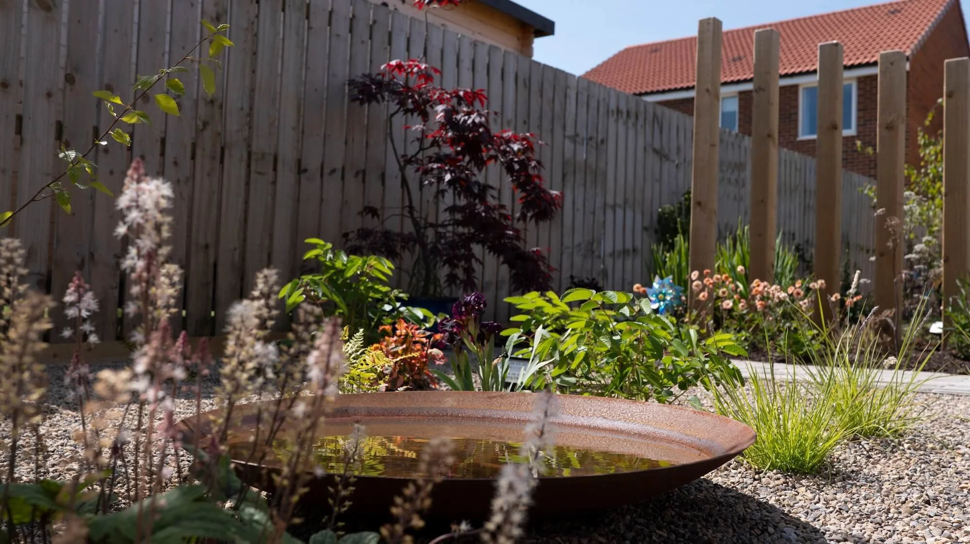 This new build situated in Alnwick, Northumberland was such an enjoyable project. As is typical of a new build, this space was a completely blank canvas and laid to lawn with only a slither of patio in front of the french doors. We worked closely with the clients who had a love for naturalistic planting and a clear idea of how they wanted to use the space which made it very much a collaborative effort. We zoned the garden using a range of materials and features, giving height and interest where there was none. It is now a pollinator haven with colourful borders, structure and space to enjoy.